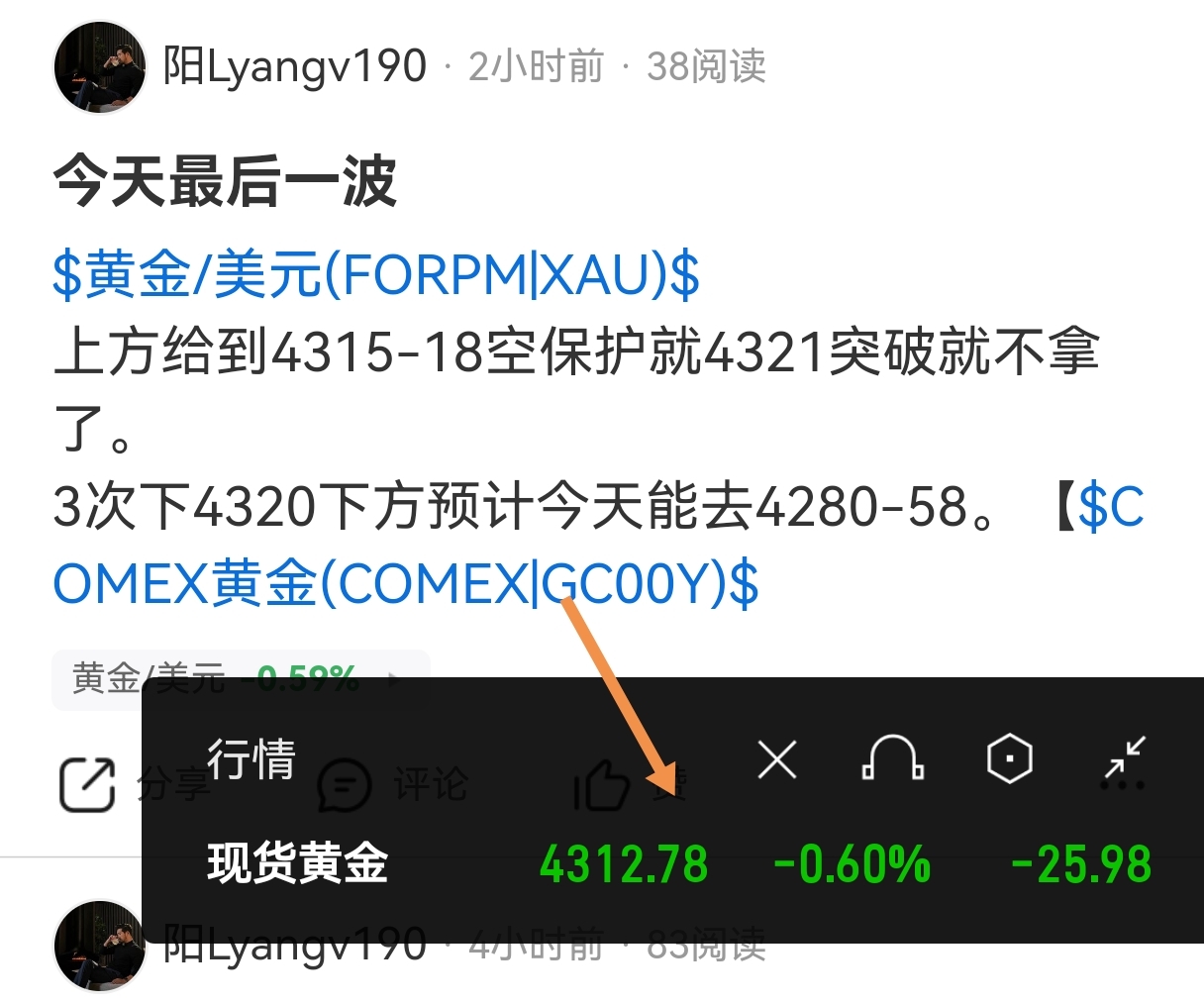 $黄金/美元(FORPM|XAU)$ 半天下不去,换宝本拿吧。【$COMEX黄金(COMEX|GC00Y)$