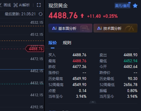 $黄金/美元(FORPM|XAU)$ 黄金这波非农和我预期一直,利好黄金,黄金也成功上涨,现在处于4488这里,咱们在4465的多给到23个点,这波的话不拿的可以先收割出来,还想上看的留个底仓看4500附近,若后续给到4470/73附近可再多一波~#强势机会#