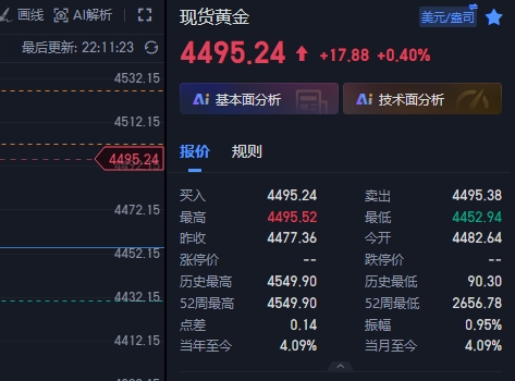 $黄金/美元(FORPM|XAU)$ 黄金当前高点已经冲好之4495位置,晚间在4465的多还有余仓的可以全部收割出来了,稍后建议在4495这里反手空一波,下方看4475附近~#强势机会#