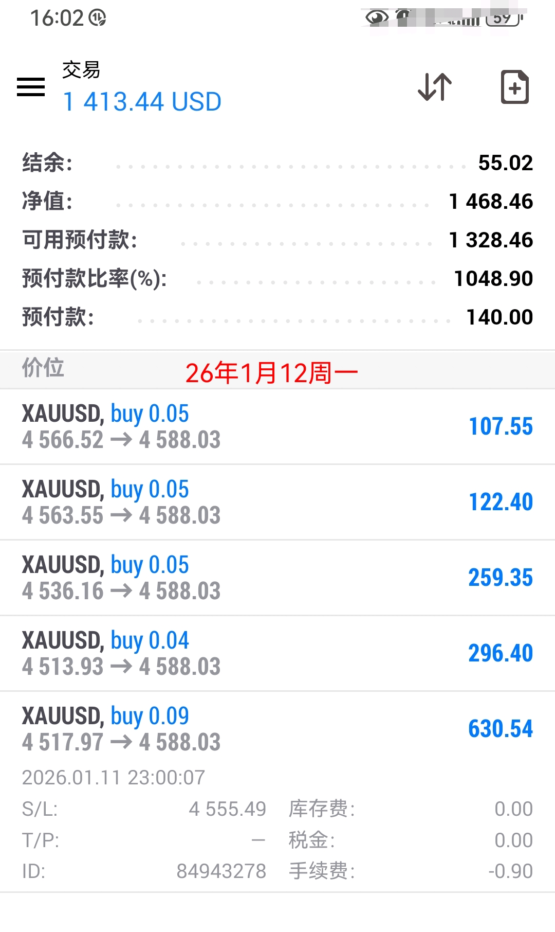 $黄金/美元(FORPM|XAU)$ 1月12周一,世界和平,开盘干多