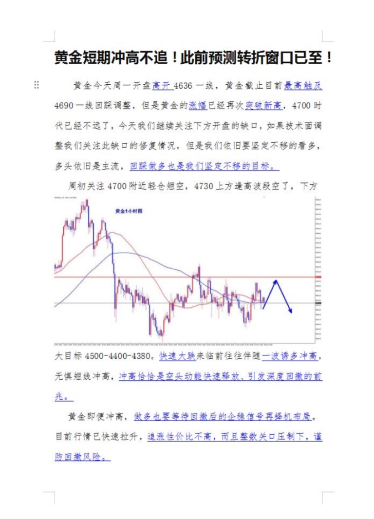 【周初黄金跳空高开冲击4700,警惕冲高回撤风险!】