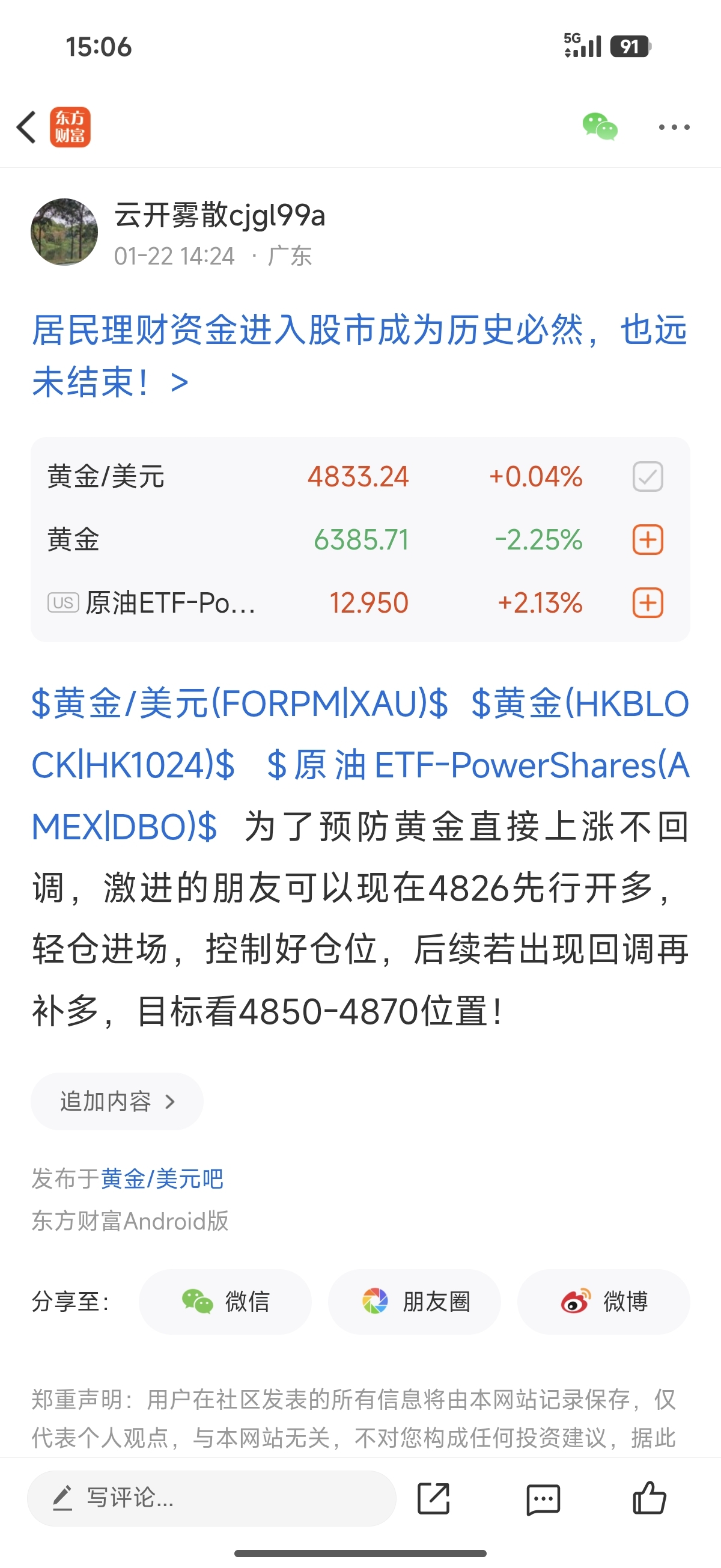 $黄金/美元(FORPM|XAU)$ $黄金(HKBLOCK|HK1024)$ $原油ETF-PowerShares(AMEX|DBO)$ 又给您们指了条明路,又带你们做了多单,又给你们提供了正确的方向,现在多单正在浮盈中,目标还是看4850-4870位置,粉丝们都跟上这单4826位置多单操作没?