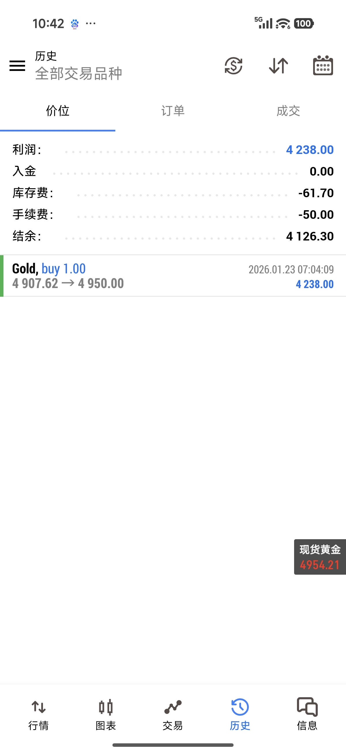 4907多单,完美在4950位置止盈离场,完美拿下43美金,行情又是按照我说的在