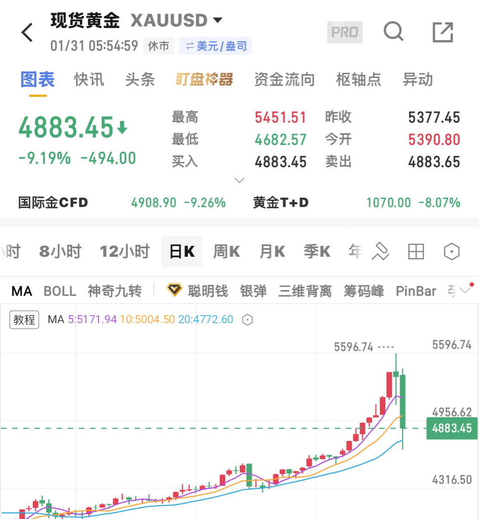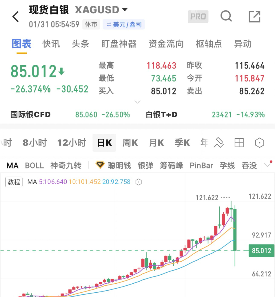 一觉醒来天崩地裂,白银收跌近30%、黄金回到4800,真就是从哪来回哪去……