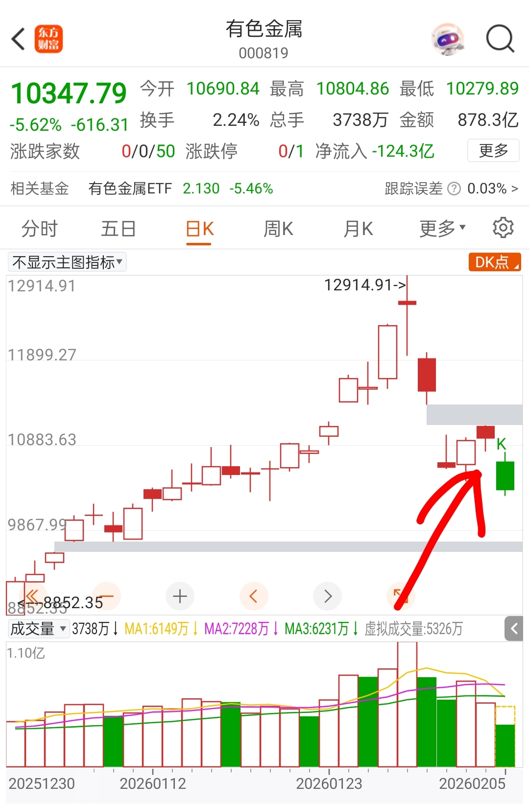 看来我昨天有色只卖布买是正确的,昨天买了有色,今天就是套牢了。