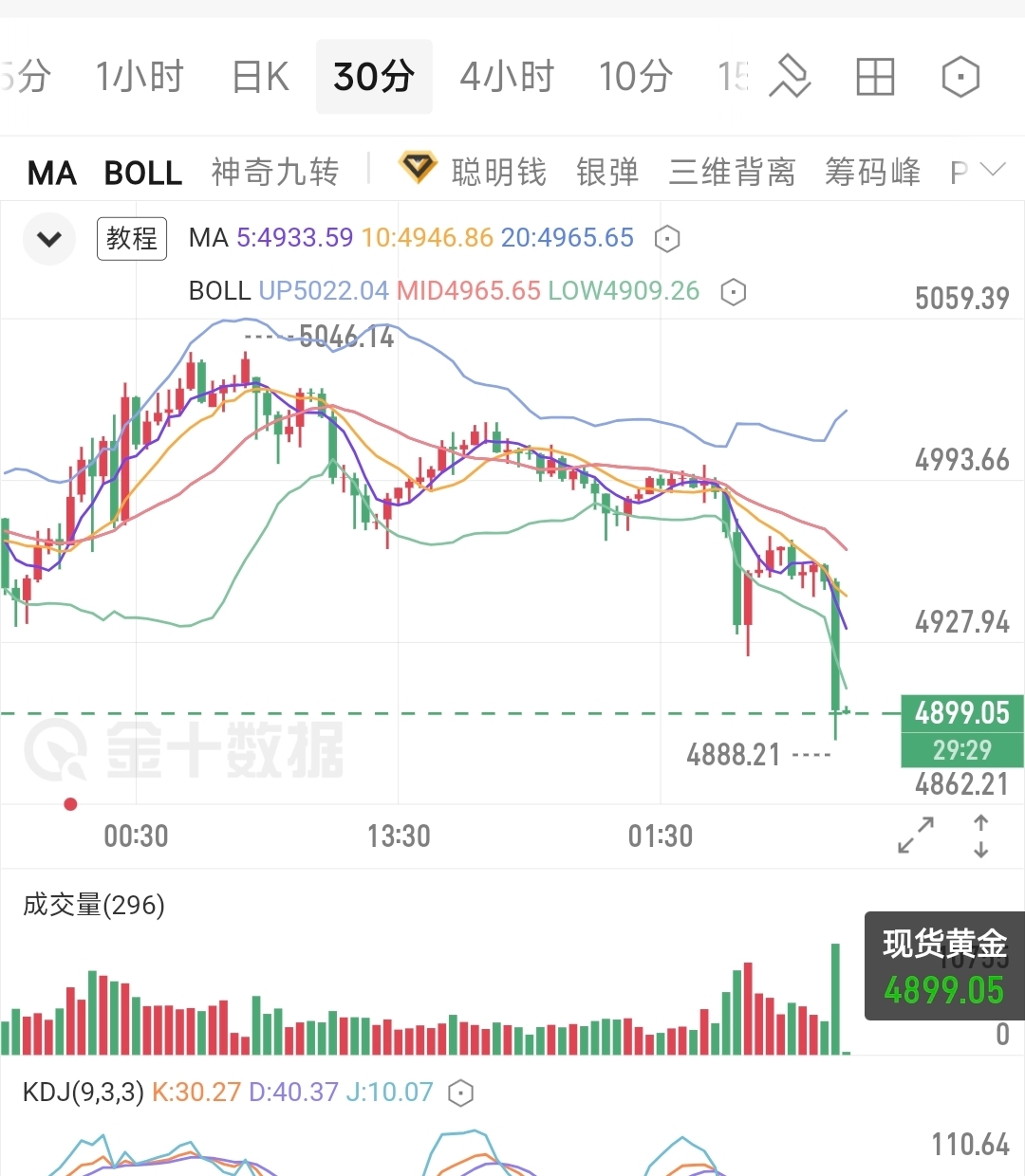 日内整体大幅震荡下行,4880支撑轻仓挂多单博反弹,防守4875。如反弹至30分
