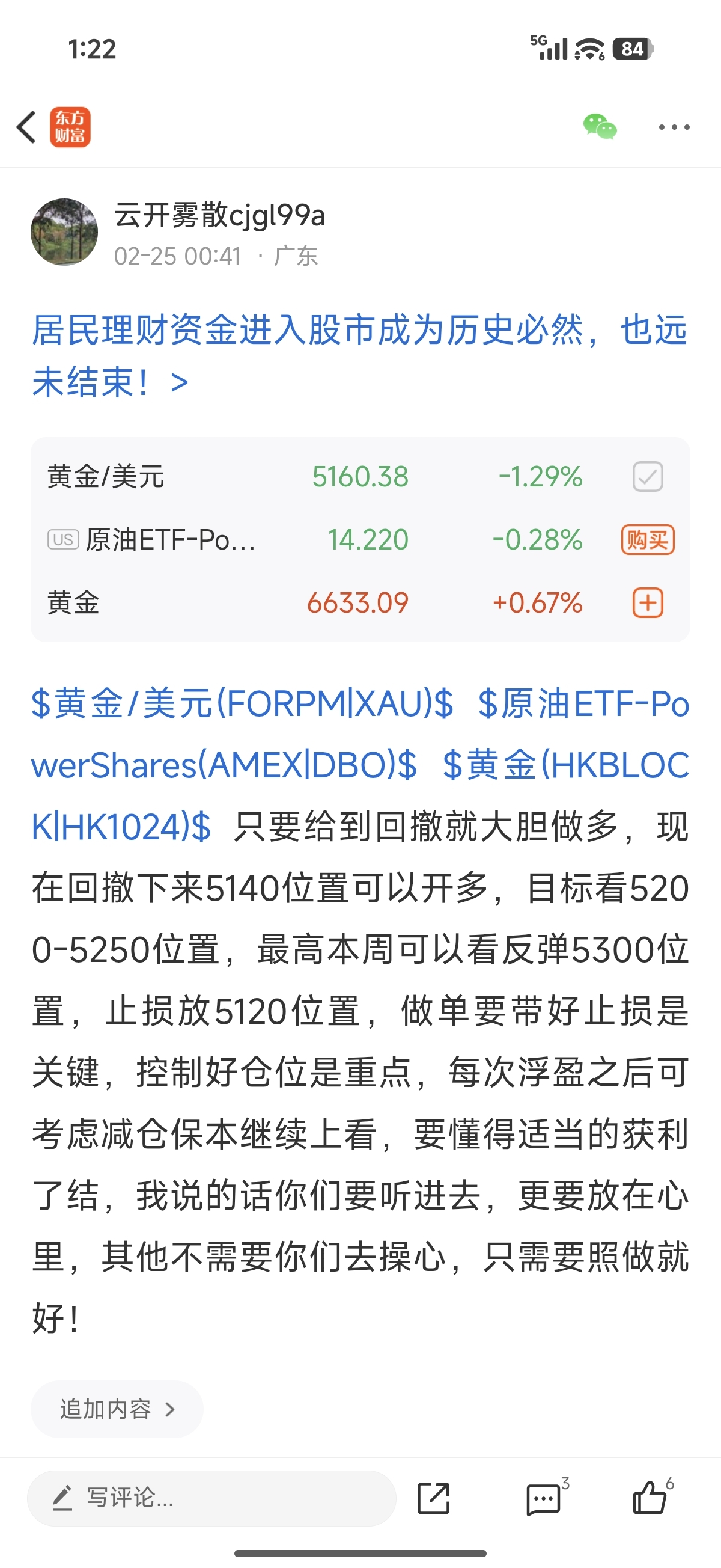 $黄金/美元(FORPM|XAU)$ $黄金(HKBLOCK|HK1024)$ $原油ETF-PowerShares(AMEX|DBO)$ 在黄金回撤下来5140位置提示进场多单后,很快现在又迎来了浮盈,目前成功反弹上来至5163位置,手上多单已有23个点的收获,有跟上这单操作的朋友现在可以选择减仓离场,剩余余仓设置好保本损继续看反弹5200位置,单子有收获时要灵活的适当获利了结!
