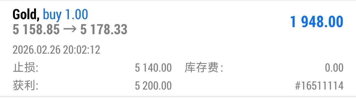 手上5158多单提示进场后,黄金马上就开始反弹,直接进入浮盈状态,目前已有20个