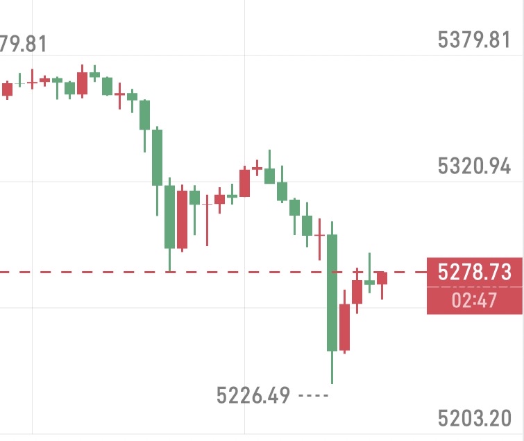 欧盘走低砸向5226来到昨日强调意外走低的位置接多