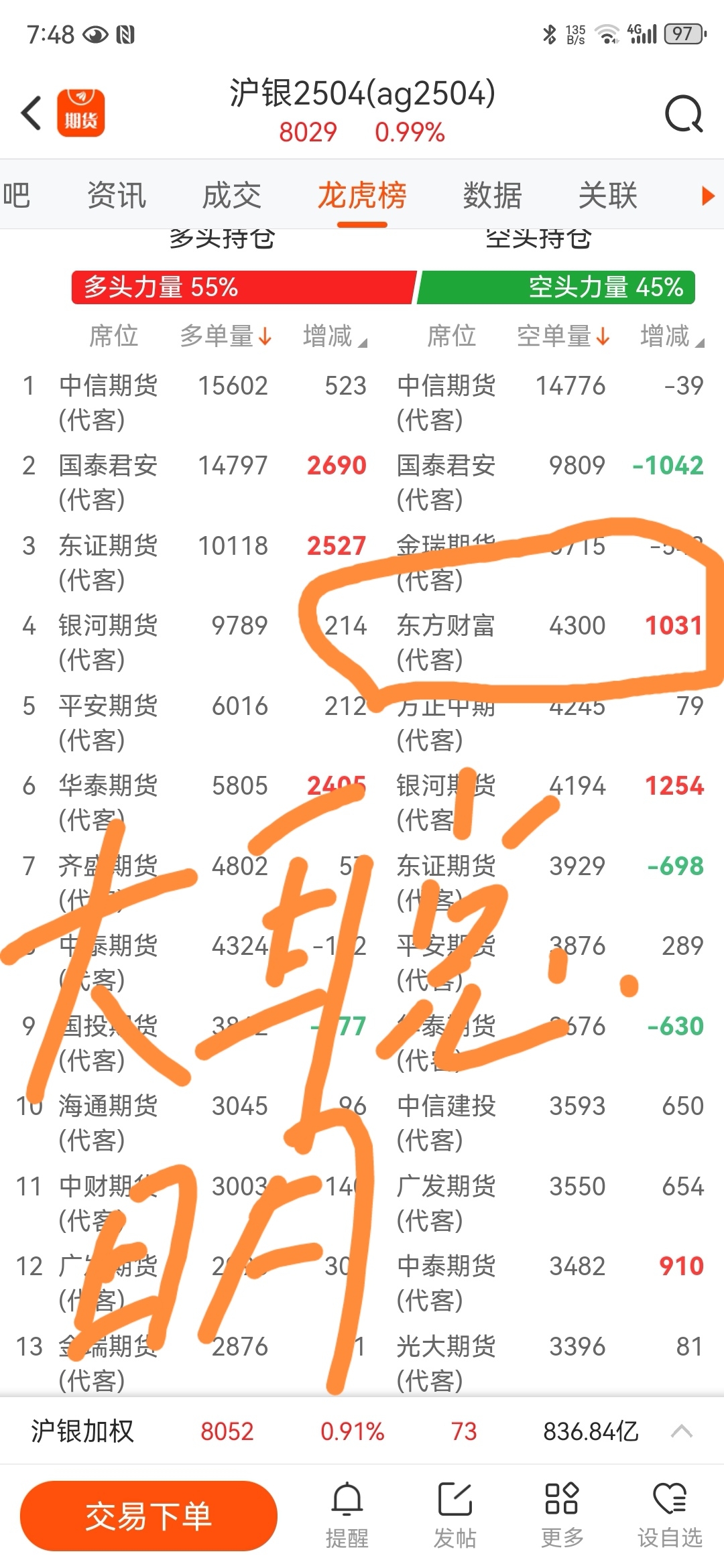 $沪银2504(SHFE|ag2504)$ 榜上有名啊,能跌才怪