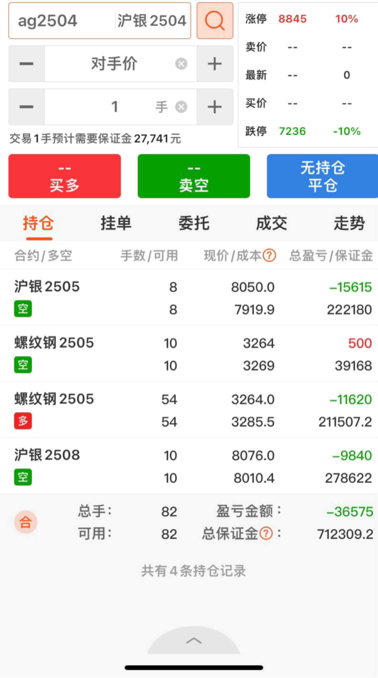 $沪银2504(SHFE|ag2504)$ 我的空单能不能吃肉就看你跟外盘跳水了。
