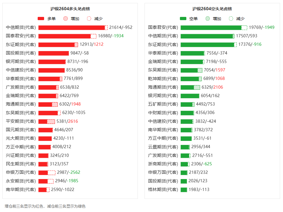 沪银龙虎榜 | 主力合约减仓下行 多方呈退场态势 空方呈进场态势