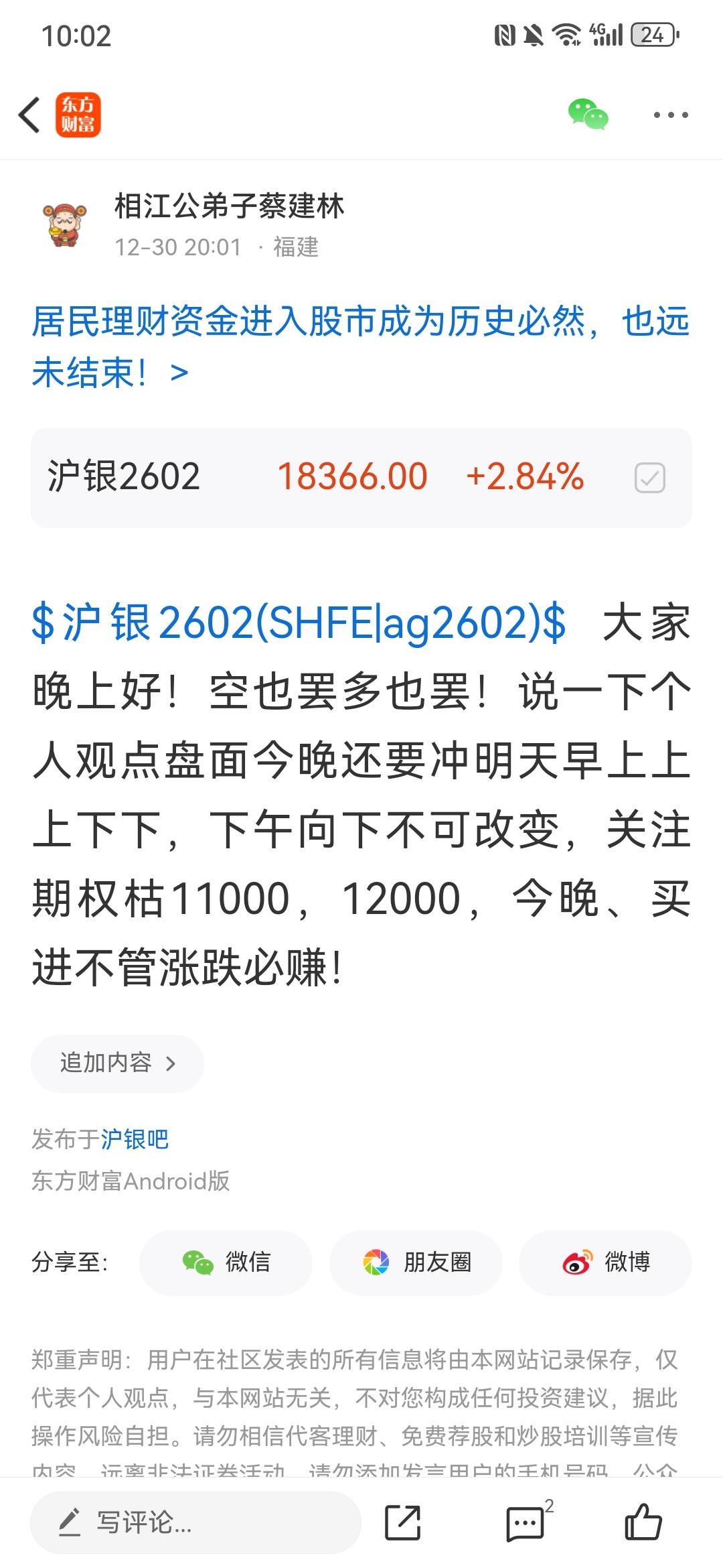 温馨提示: 1.根据《证券法》规定,禁止编造、传播虚假信息或者误导性信息,扰乱证券市场;2.用户在本社区发表的所有资料、言论等仅代表个人观点,与本网站立场无关,不对您构成任何投资建议。用户应基于自己的独立判断,自行决定证券投资并承担相应风险。《东方财富社区管理规定》