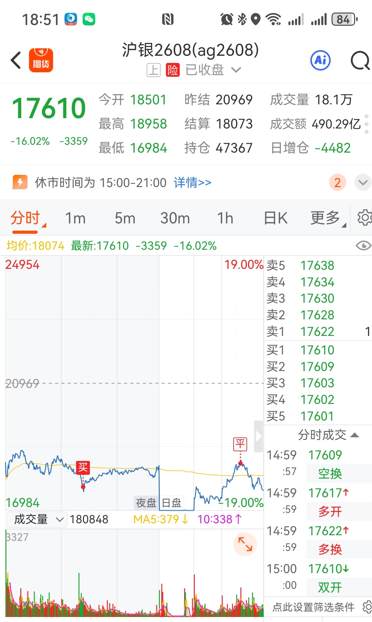 大跌必有反弹,昨晚果断做多。虽然早上开盘延续跌势,旋即拉升,锁定收益离场。