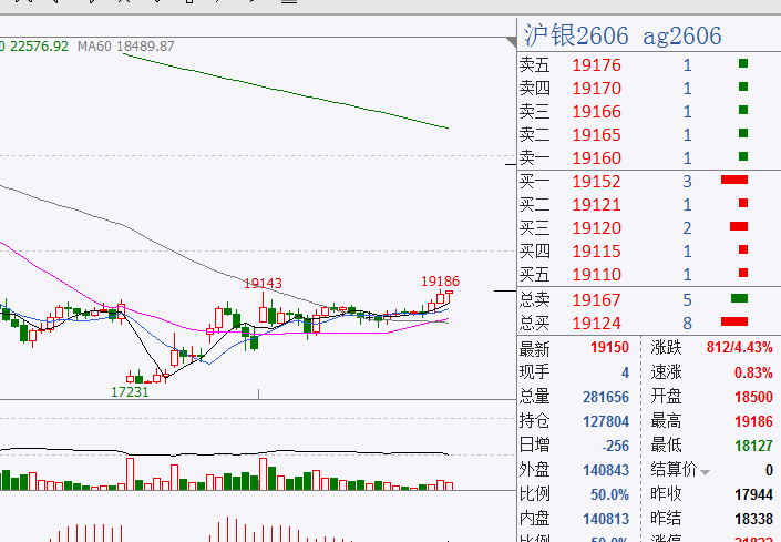 白银目前形态已经有了,短期看一个多头形态。明天关注两个方面因素:1、外盘能否延续反弹;2、内盘能否上量配合拉。短期压力位20100附近,我个人认为还是一个震荡偏多的走势,乐观点还能上25000.