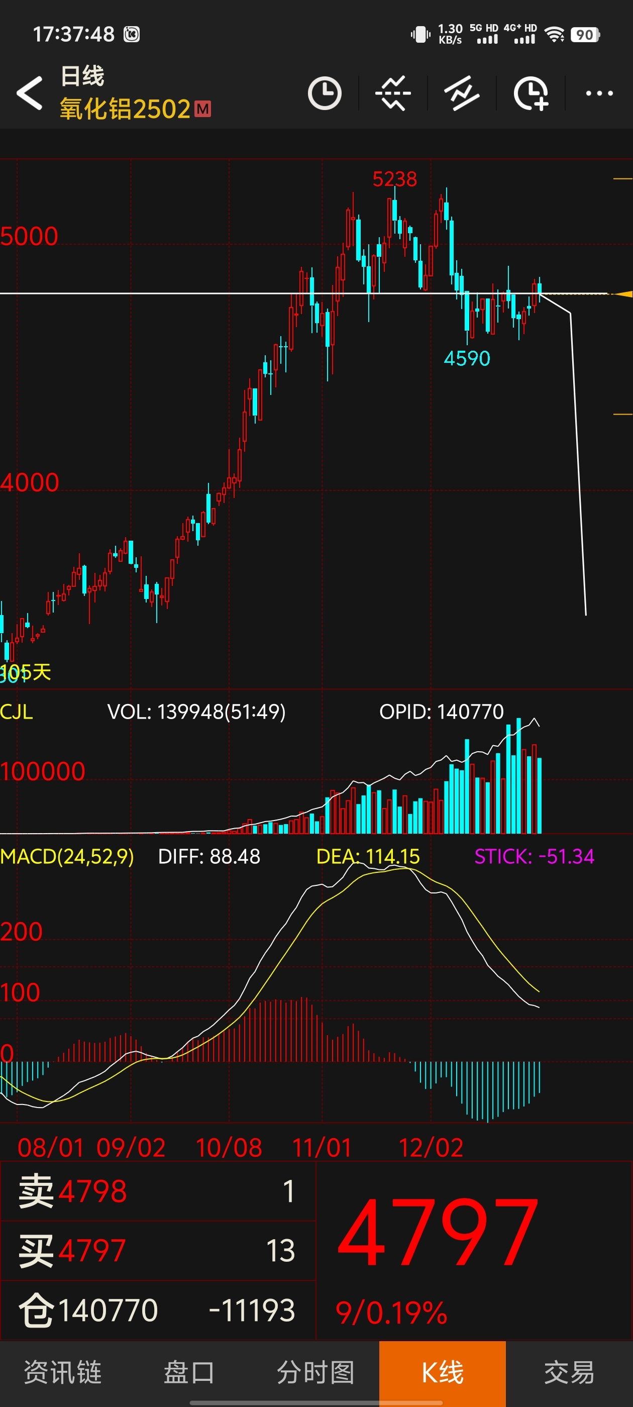 非常标准的空头形态!三重顶!随时突破