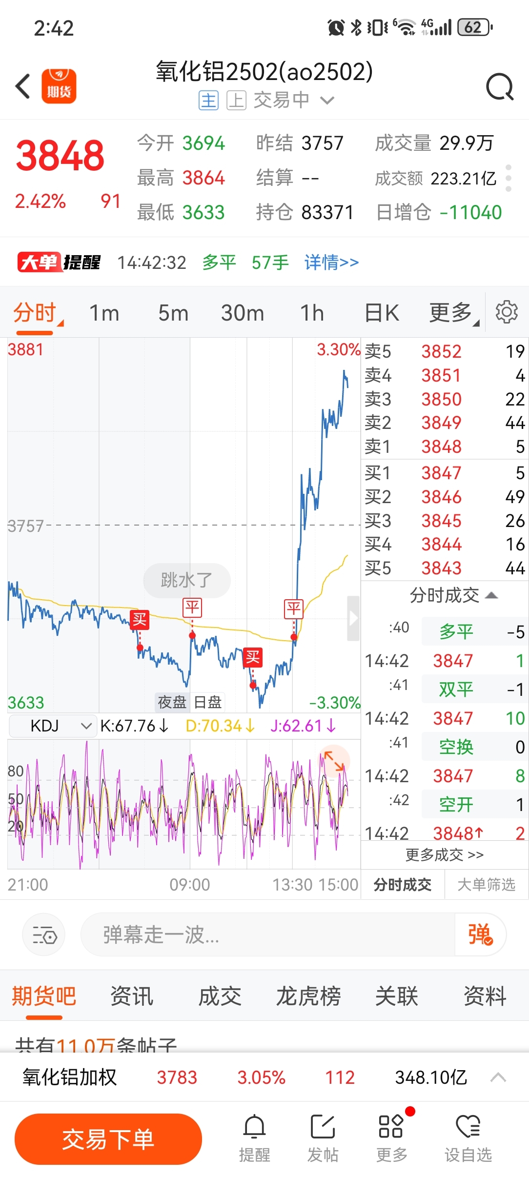 $氧化铝2502(SHFE|ao2502)$ 两手少赚6000块