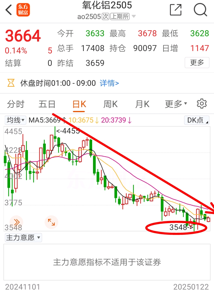 $氧化铝2505(SHFE|ao2505)$ 氧化铝一眨眼我几个月没做了,今天回看,目前这个品种趋势上处于调整周期,近期关注2505合约3548分水稳于之上则调整后的反抽。