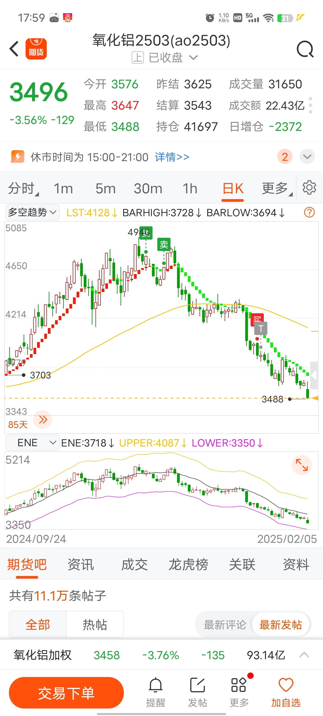 $氧化铝2503(SHFE|ao2503)$ 真是草了卖早了。