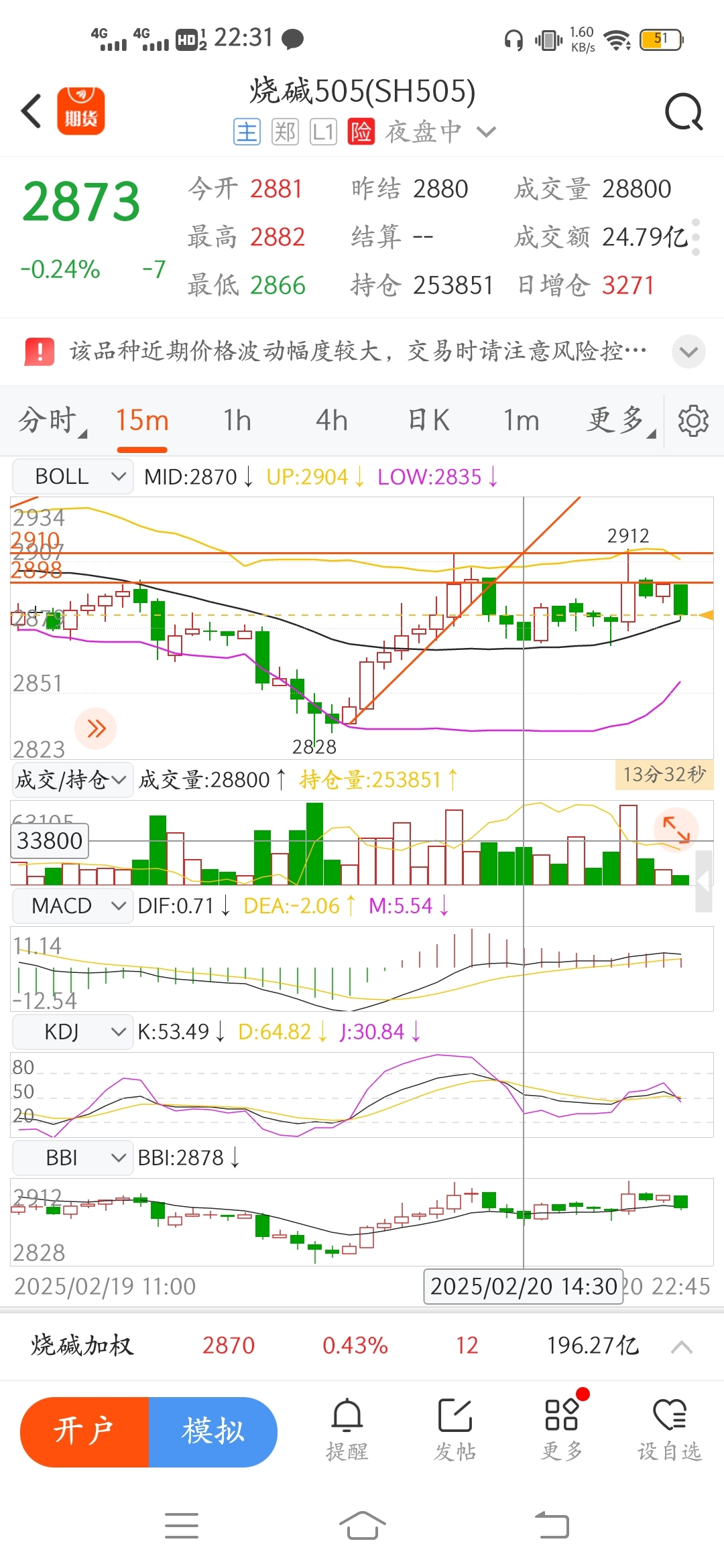 氧化铝震荡走高,烧碱下午2866附近回弹到夜盘2910附近,再回落到2880附近,多空都有了,逢低平仓高位空单,逢高做空,来回倒腾,主力货不出个差不多,估计不会快速拉升。