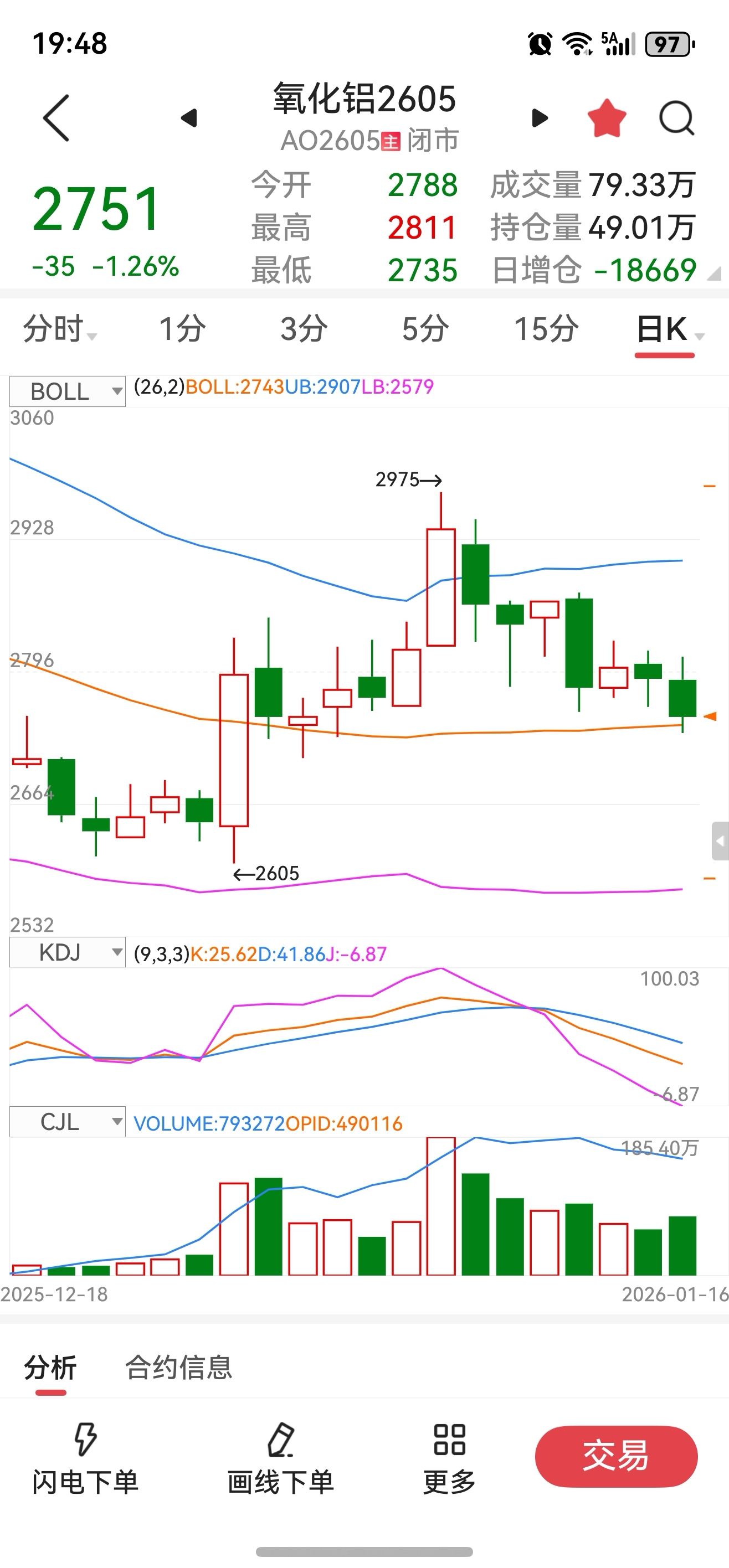 $氧化铝2605(SHFE|ao2605)$ 每一根线都是有道理的布林中轨之上