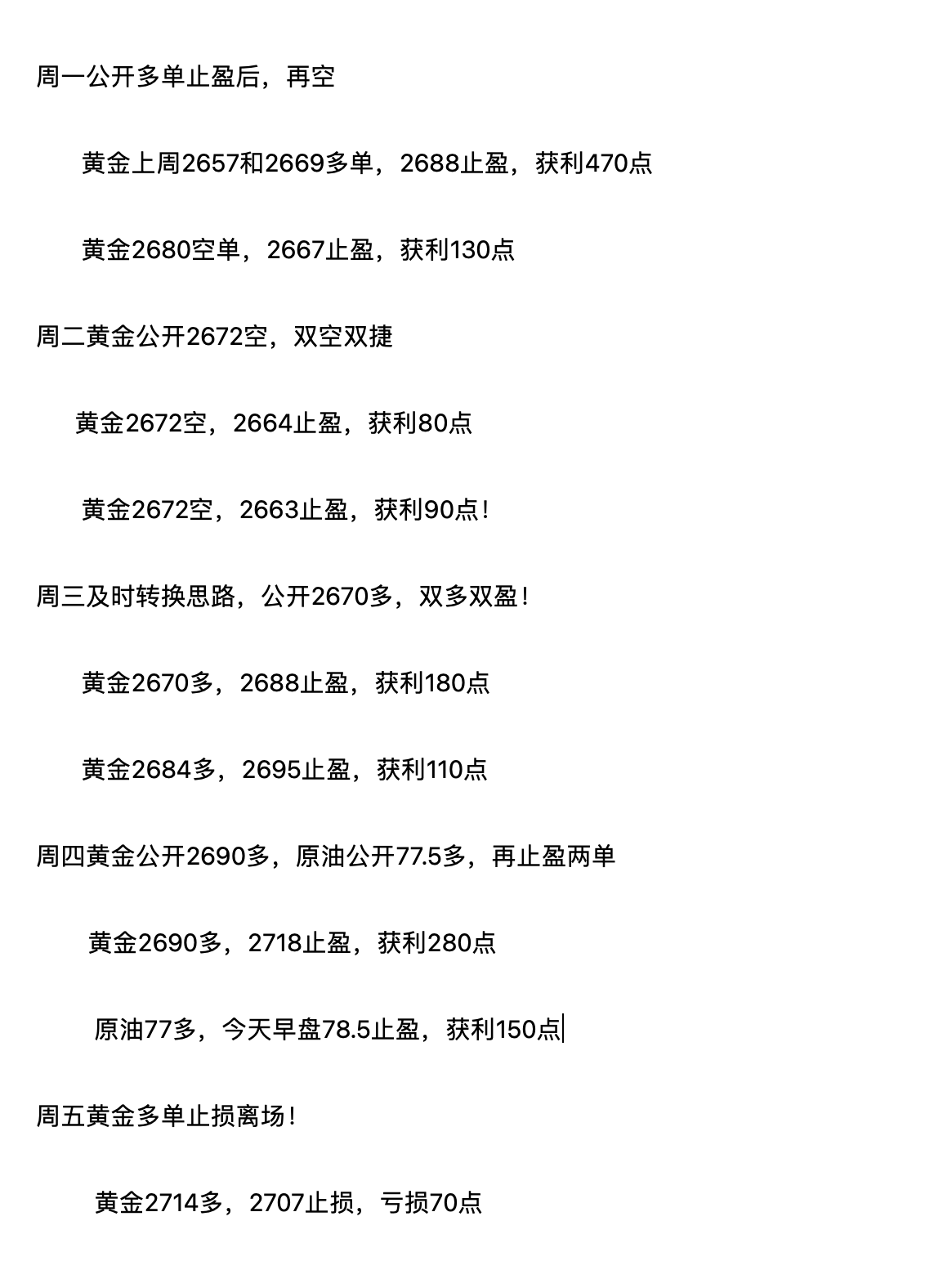 本周依然稳健,10单止盈9单,再次获利1000点以上