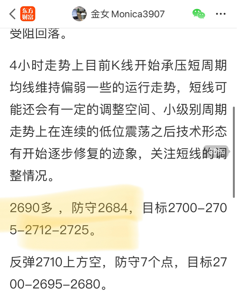 周一开门红早盘2690提示多单,现价2700精准吃下10点,目标继续看2705上