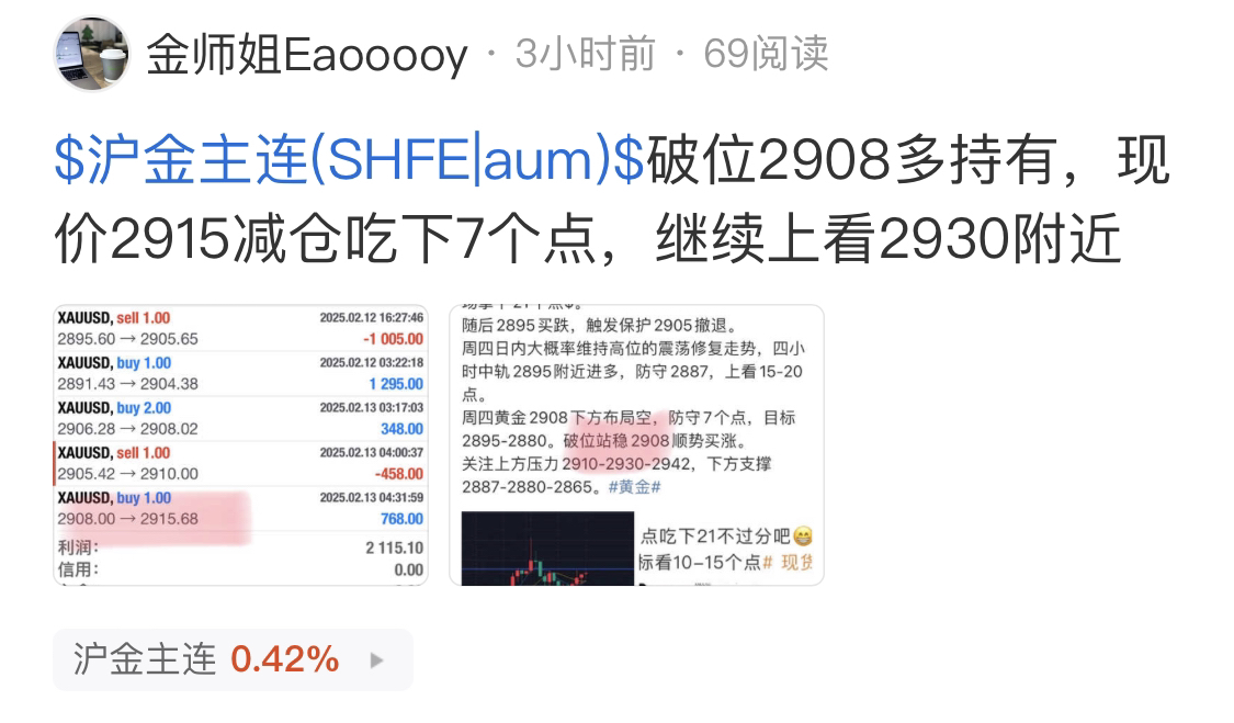 睡醒发现黄金一度涨到2922,布局的2908多也能吃下14个点了吧,短线2918