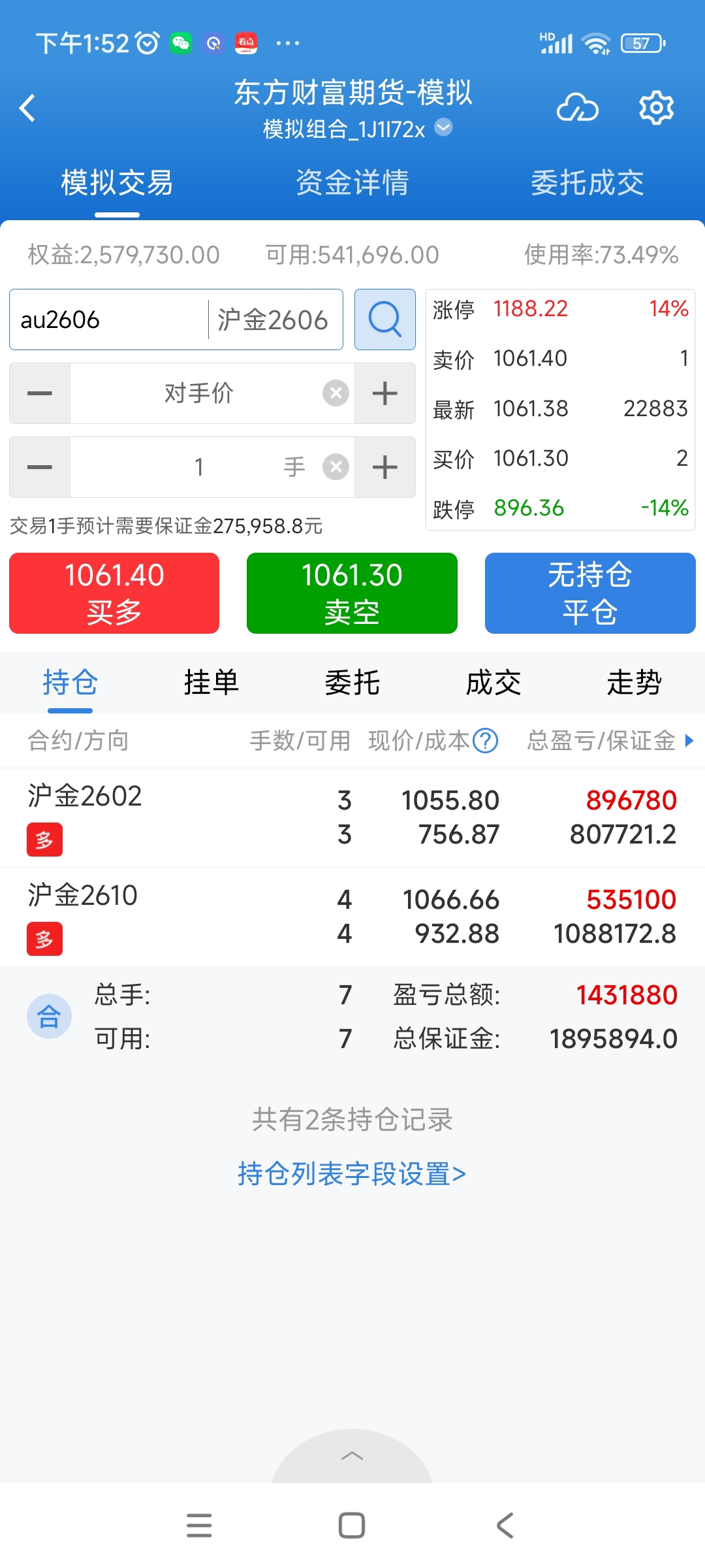 $沪金2606(SHFE|au2606)$ 模拟盘是不是说明我适合股指期货