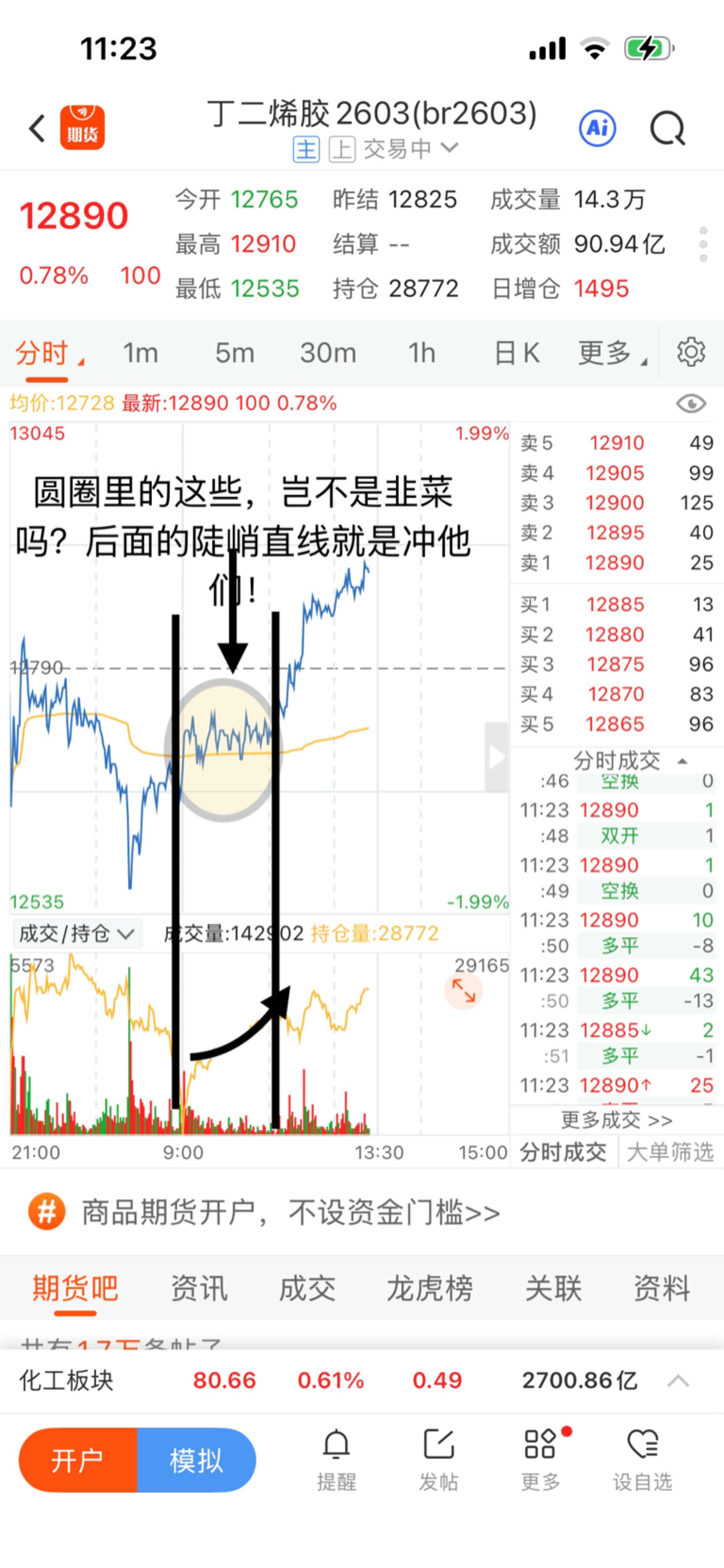 但是刚刚上午又近了很多开空的韭菜!所以主力就先暂时做一个上涨波段!