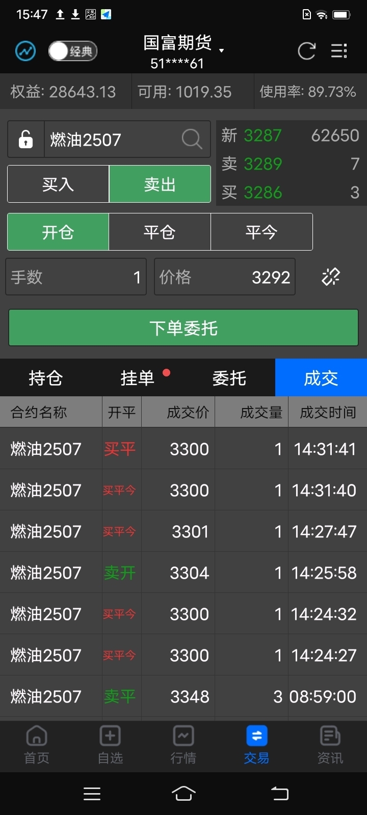 $燃油2507(SHFE|fu2507)$ 工欲善其事必先利其器,开立交易手续费低、开仓保证金低、还月返交易手续费百分之十八,而且最最关键的是同样资金现在可以开双倍的单子,就是不需要再另入金的情况下随时可开等额反向单的期货账户是多么多么重要!我不得任何好处,只是想以多做善事求得长寿,真诚引荐。我今天开六手空单赚了五十跳是主思路做多可是风险来临时有这个好账户的福利就最低成本的最大程度的降低了风险!