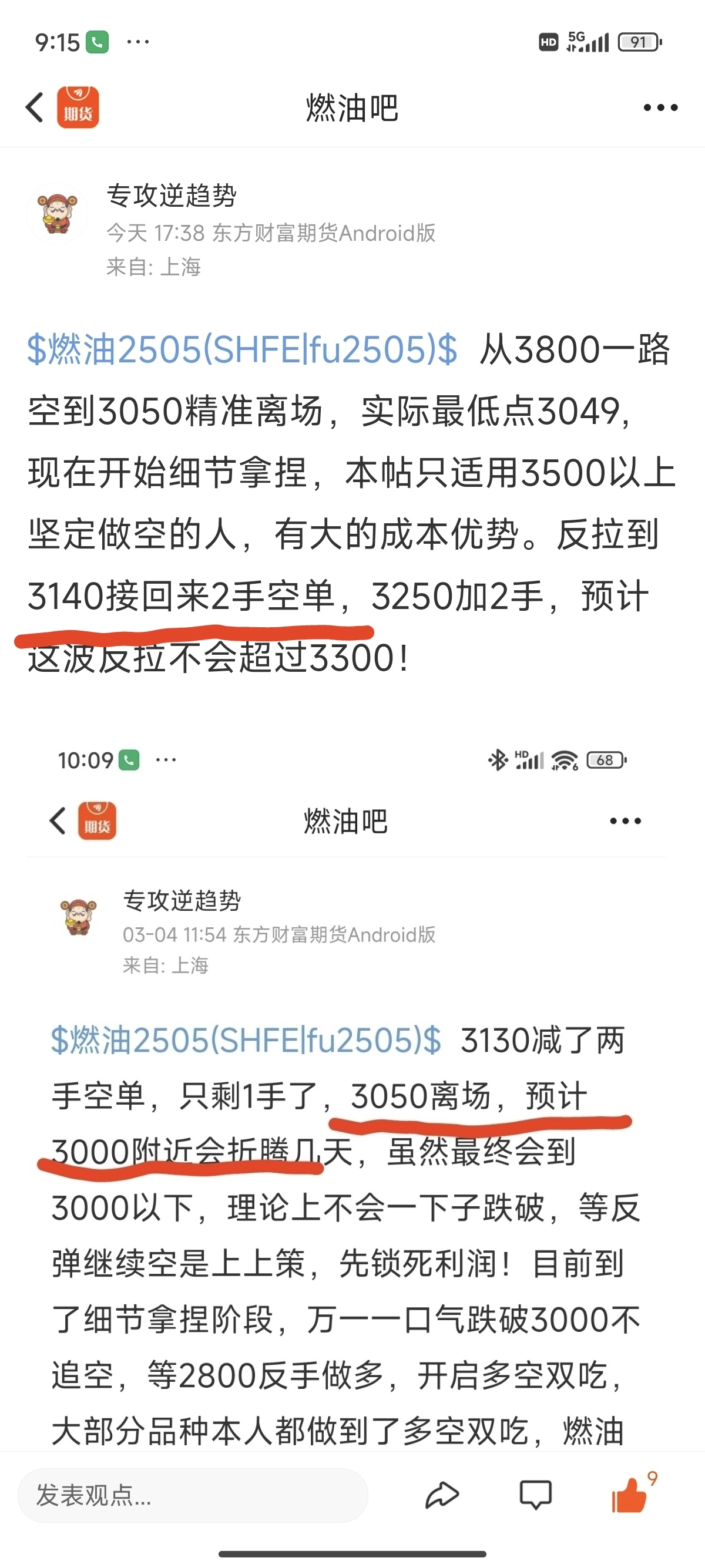 $燃油2505(SHFE|fu2505)$ 3140成功接回来两手空单,止盈目标价3080!