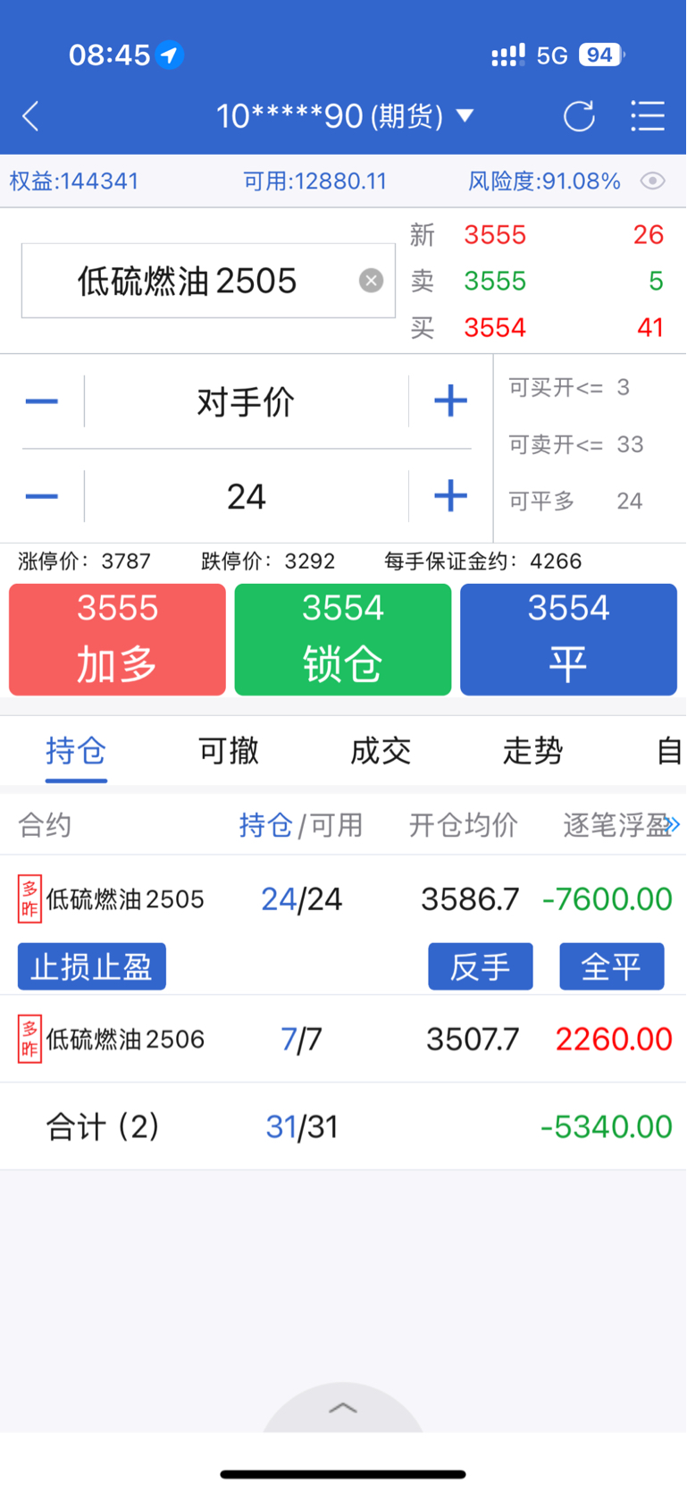 $燃油2505(SHFE|fu2505)$ 救我,我是外卖员,美原油昨晚收盘后跌了百分之1.2,消费贷16万,周一开盘要亏多少