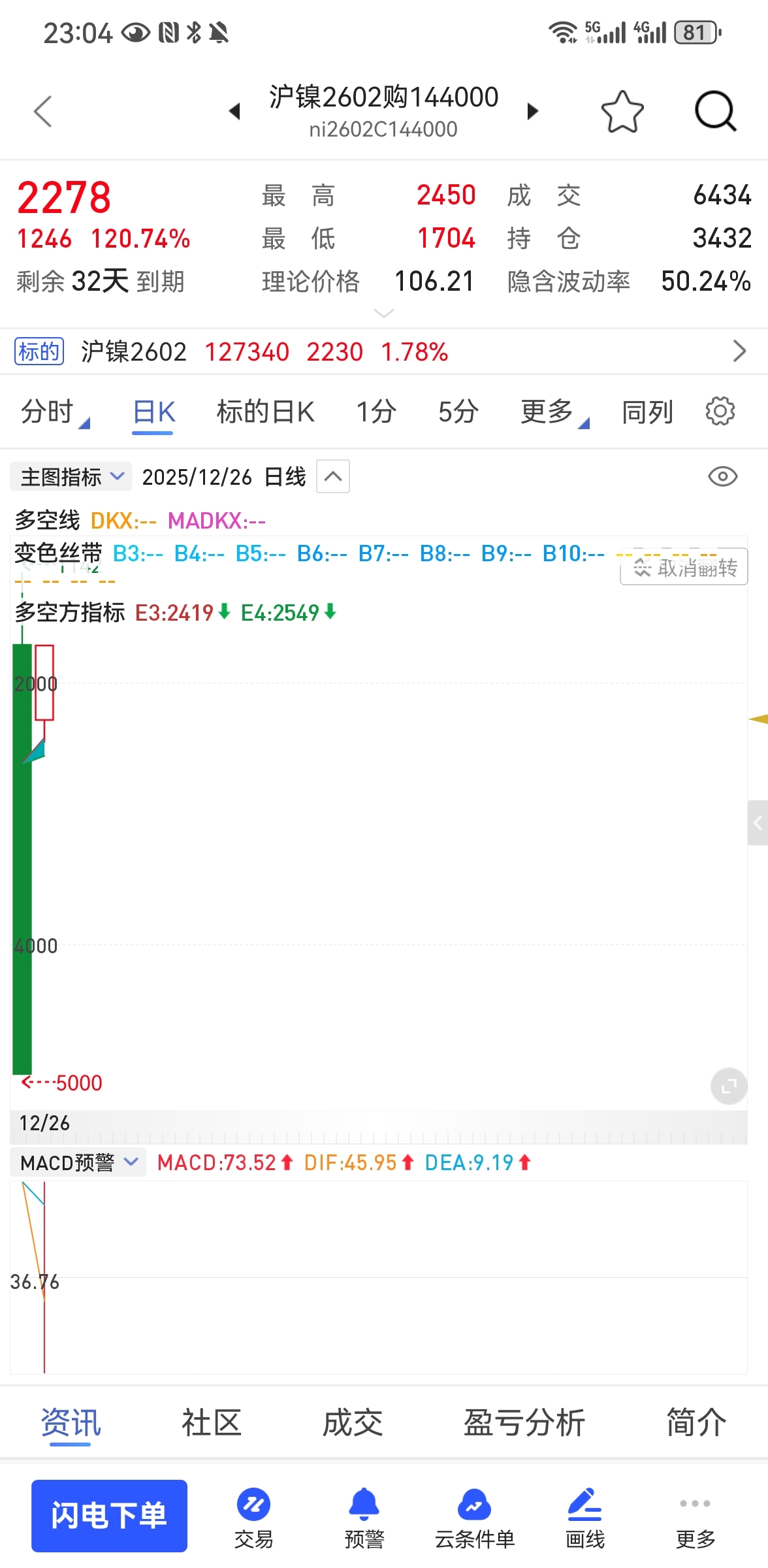 最近期货行情。沪银。沪铜。沪镍。PTA。短纤。棉花。这几个品种。2062合约期权期货。又放大杠杆。一路顺风唱多头。又像白银那样。单边行情。政策利好搭配放大杠杆。主力控盘多头。注意:比如某个品种合约期权新增加一个新标的合约。一定要注意风险。这就是期货期权加大杠杆原理意思。。好多人都不了解。加大杠杆原理就是百分之90要涨。以后要记住。为什么期权有时候会新增加一个标的合约呢?一般某个品种期货大涨时候。在高位。或者高位横盘。所以他还想再涨上去一波,主力资金放大加大杠杆。意思就还想继续上涨意思。