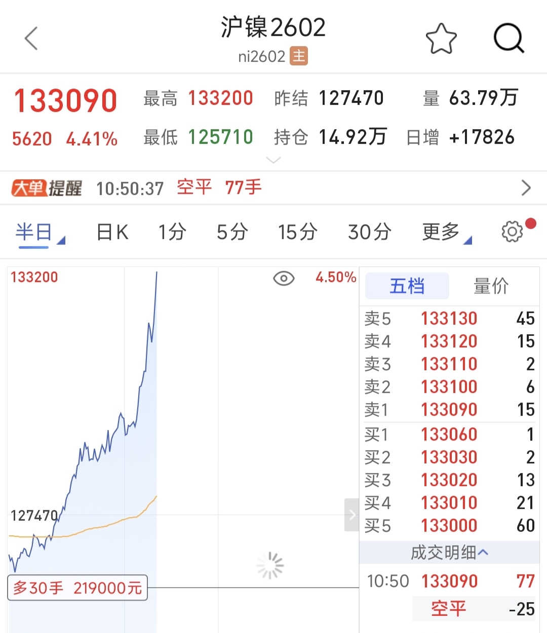 沪镍终于放量突破前高了,并且站上了13万关口,接下来可以高看一眼,小目标16万。