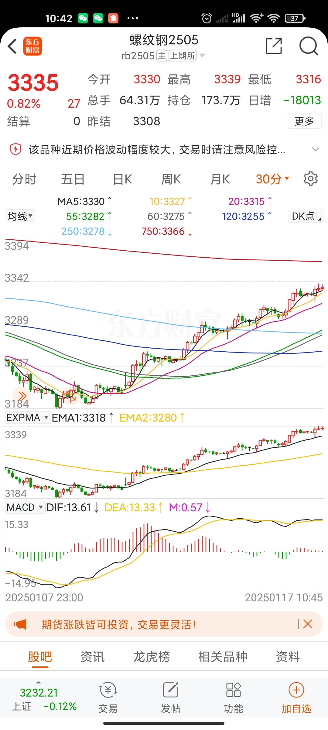 $螺纹钢2505(SHFE|rb2505)$ 昨日3300还在犹豫,现在稳稳的3330以上,看上去上3350也不是很难啊