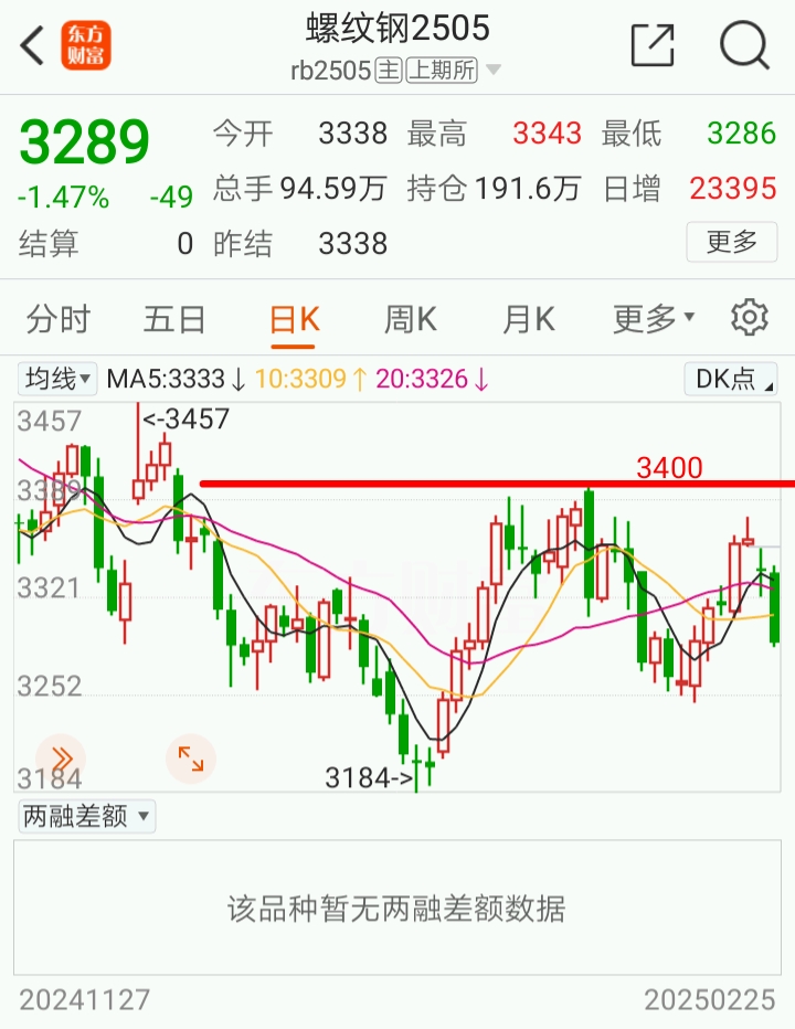 $螺纹钢2505(SHFE|rb2505)$ 商品遭遇"倒春寒"黑色系龙头螺2505合约3400下方继续震荡,短期留意3280关键分得失 稳住则不追空,防又向上反复震