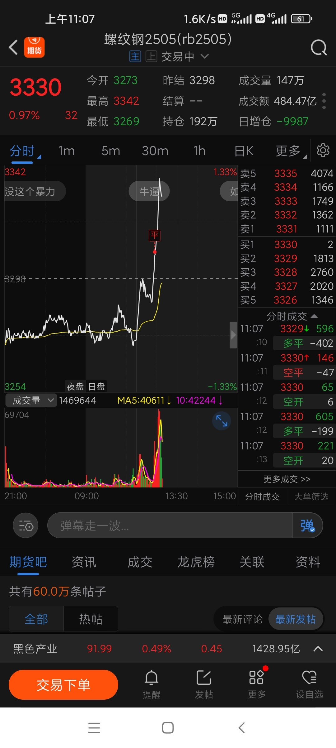 $螺纹钢2505(SHFE|rb2505)$ 握草,七手回本挣十一点个给我拉掉了,错过错过啊