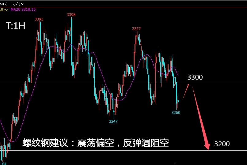 螺纹钢2505:螺纹钢上方受阻之后延续弱势回撤的走势,短期的结构形态偏空,后续看行情的回升测试力度,遇阻回落可择机空单布局。操作建议,螺纹钢回升测试3300一线遇阻不破可进场空单,目标看下方3200一线,损30个点。
