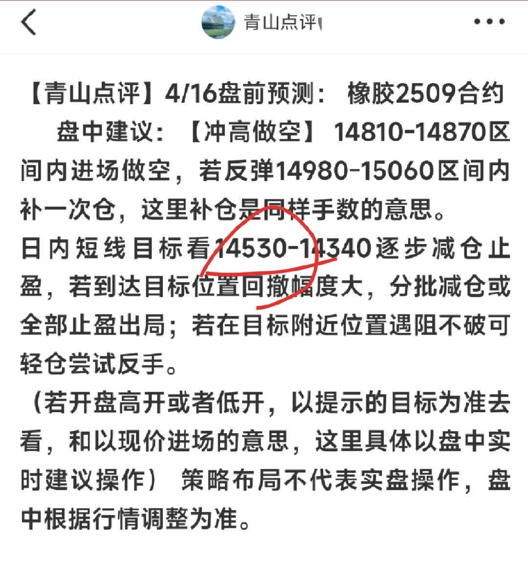 【青山点评】橡胶2509合约,4/16收盘兑现约340点左右空间!昨晚盘前提示了