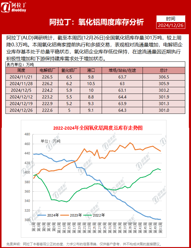 氧化铝库存很低很低,因为预期产量增加,期货大跌。2501,2502一样大跌