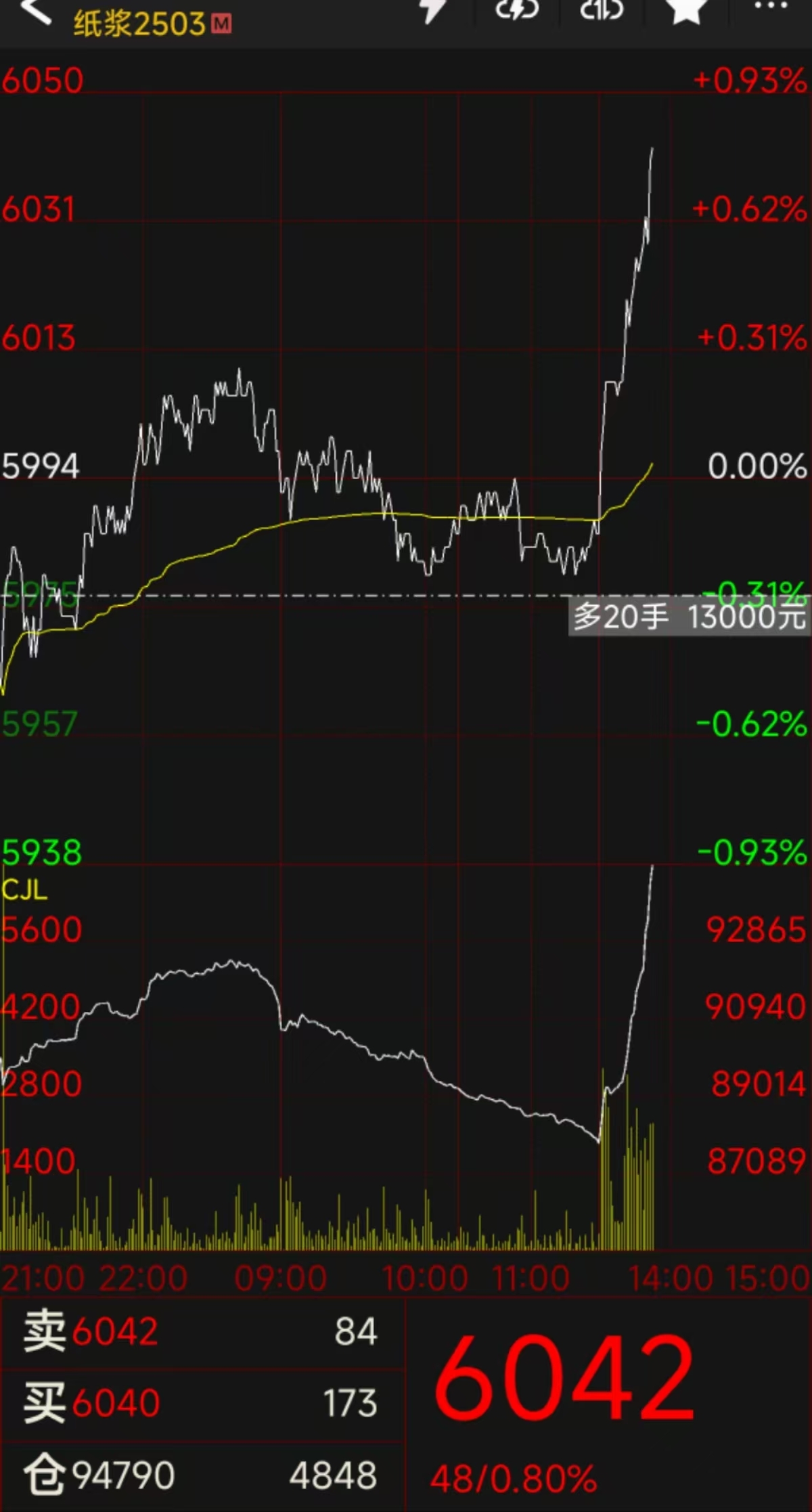 $纸浆2505(SHFE|sp2505)$ 今天的纸浆表现相当不错,午后开始强势拉升,本周我们没有过多的布局单子,主要布局的就是纸浆低位的多单,虽然纸浆这周走势比较震荡,但经过修正蓄力之后,纸浆今天再次表现出突破测试的势头,看这波纸浆能否进一步突破从而测试前期高点的位置。#纸浆期货#