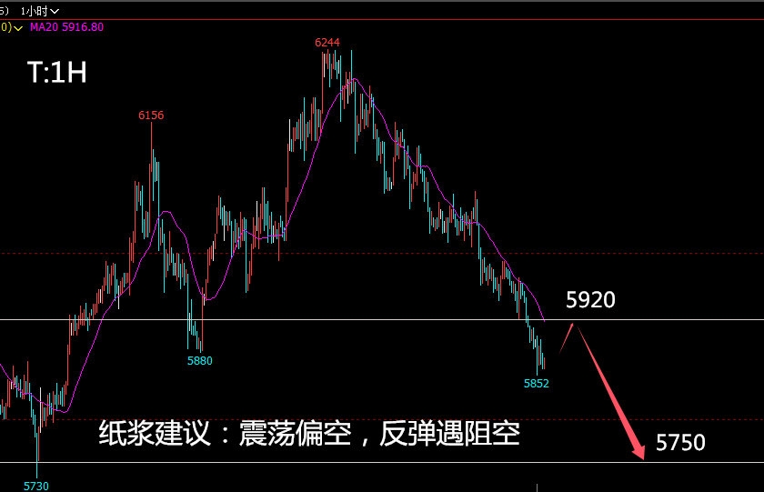 纸浆2505:纸浆延续震荡回撤的走势,整体的势头偏空运行,后续看行情的反弹测试力度,遇阻回落可择机空单布局。操作建议,纸浆回升测试5920一线遇阻不破可进场空单,目标看下方5750一线,损40个点。