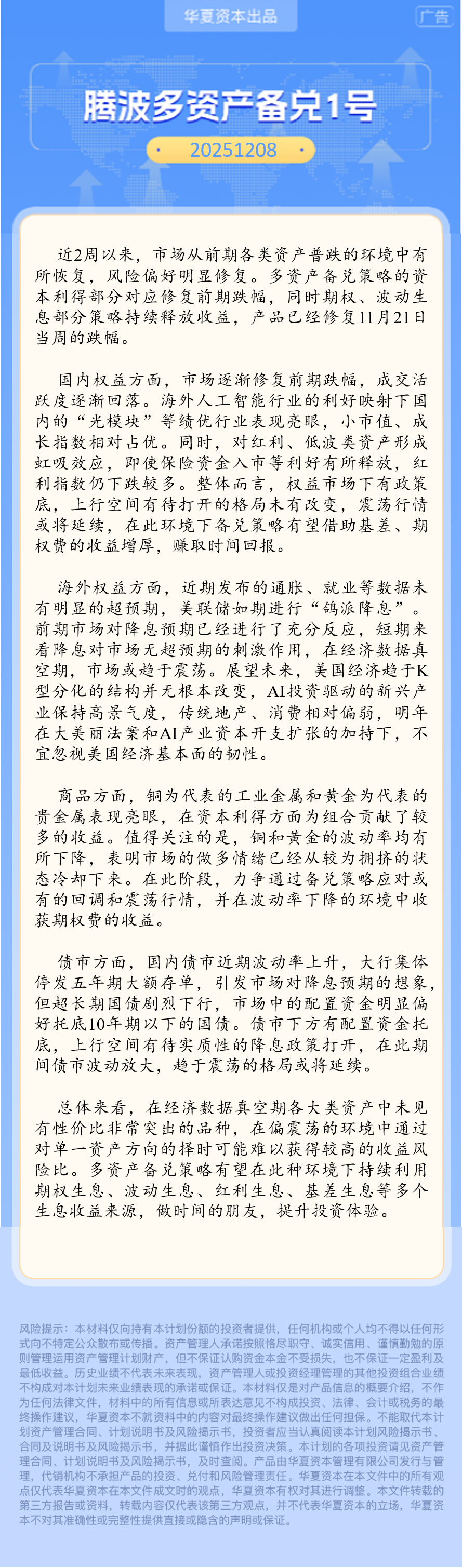华夏资本-腾波多资产备兑1号双周回顾(2025-12-08)