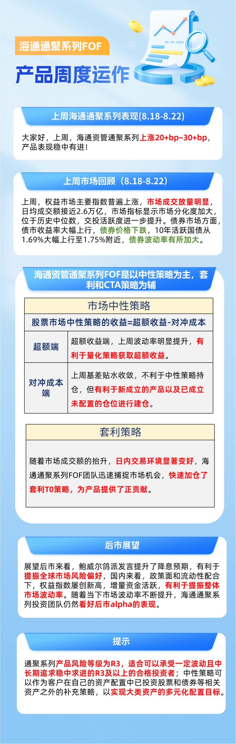 大家好,上周,海通资管通聚系列上涨20+bp~30+bp,产品表现稳中有进!具体请参考如下周报,随时沟通,谢谢~