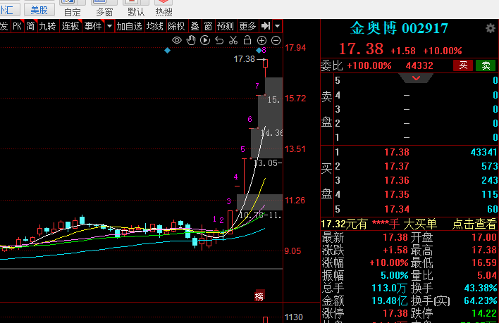 金奥博(002917): 快成市场最高标了,明天看能否再打开高度。