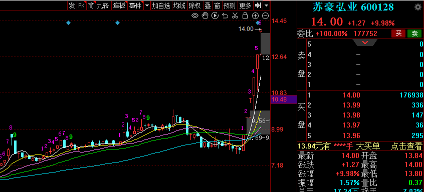 苏豪弘业(600128): 市场公认的AI玩具方向龙头,今日集合竞价表现抢眼,主力加单明显,开盘即有秒板预期。连续一字板使得股价加速上涨趋势略显尴尬,增加了后市不确定性。从题材催化看,AI玩具概念仍处于市场关注热度高位,但6进7过程中往往需要新的利好支撑。能否有效放量打开,以及AI题材能否持续发酵,将决定后续走势。目前该股已具备较高预期。