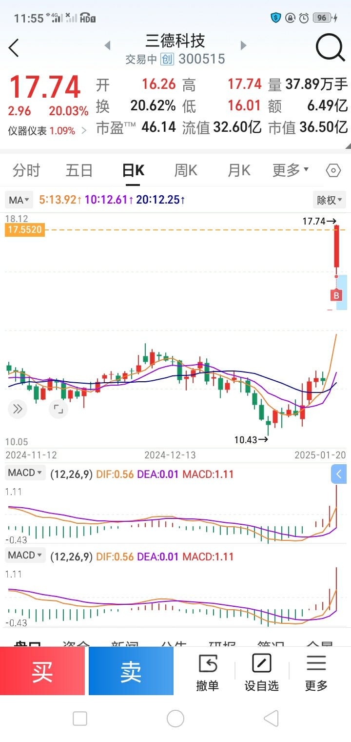 )。2,今天唯一买进三德科技。买定离手交给市场!!!