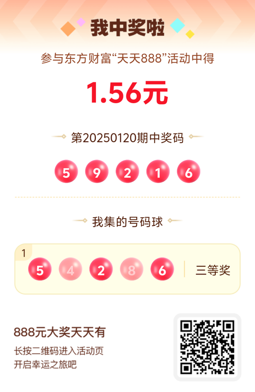 好运来敲门!我在东方财富“天天888”抽奖活动中抽中1.56元红包!快来参与,下一个幸运星可能就是你!