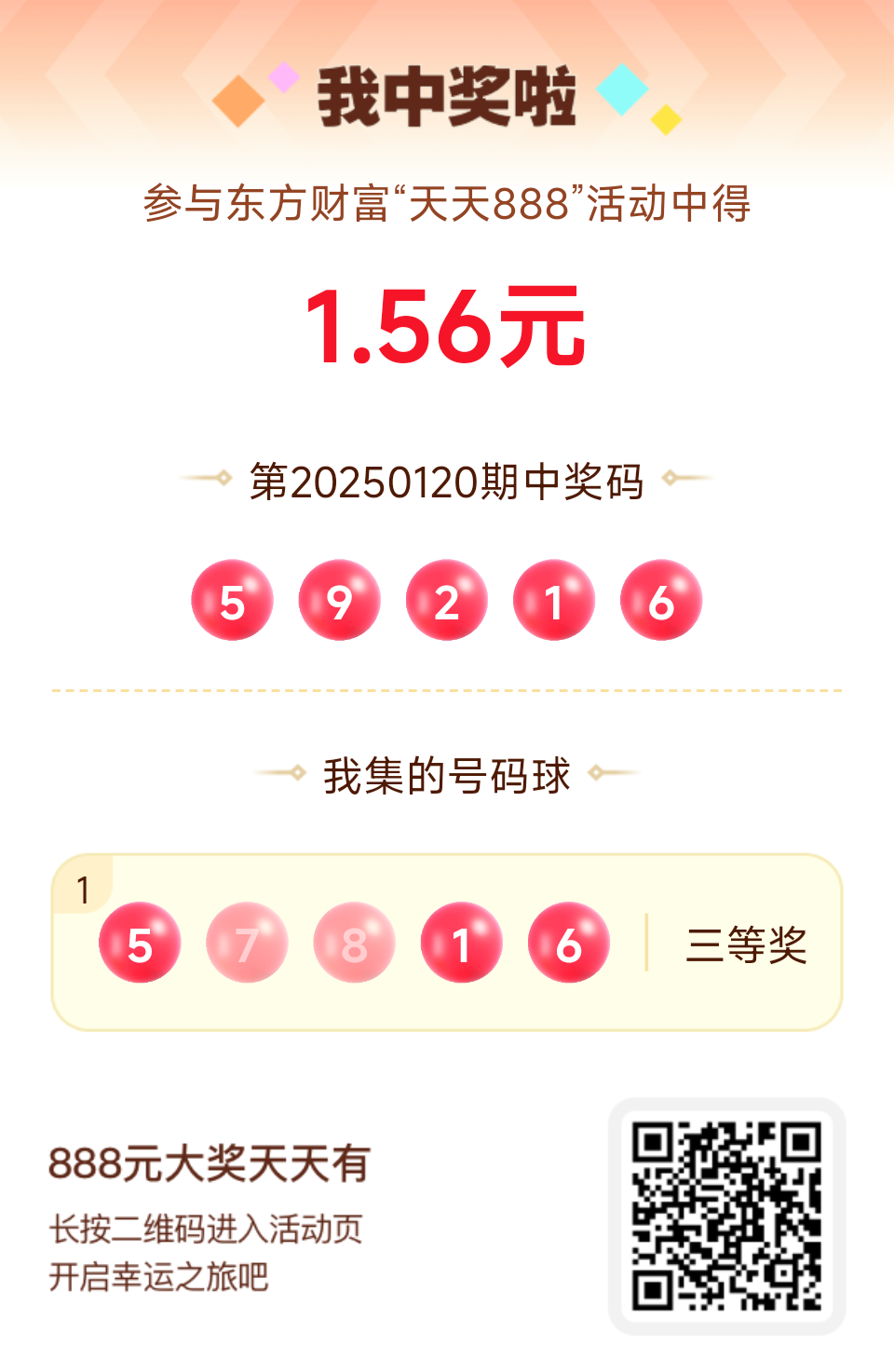 好运来敲门!我在东方财富“天天888”抽奖活动中抽中1.56元红包!快来参与,下一个幸运星可能就是你!